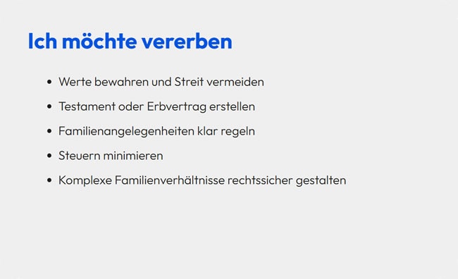 - Umfassende rechtliche Begleitung im Erbrecht.