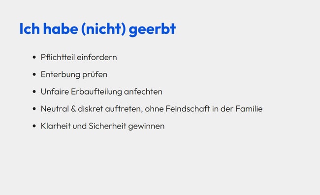 - Prüfung und Durchsetzung von Pflichtteilsansprüchen